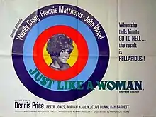 Just like a Woman is a 1967 British comedy film written and directed by Robert Fuest and starring Wendy Craig, Francis Matthews, John Wood, Dennis Price and Clive Dunn.[1] The film's plot follows a wealthy couple who work in the entertainment industry and decide to separate, but soon begin to miss each other.[2]