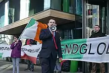 Justin Barrett (born 13 April 1971) is an Irish far-right politician who has been the leader of the National Party since 2016. Barrett's activism began in the 1990s, with the anti-abortion campaign group Youth Defence. He campaigned against the Treaty of Nice in 2002 and founded the National Party in 2016. Barrett and the National Party campaigned for a No vote in the 2018 abortion referendum through the Abortion Never campaign,[11] which functioned as "an Irish nationalist anti-abortion campaign".[12]