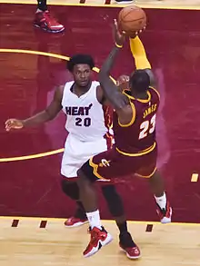 Winslow played in all 27 games to begin the season, and scored a season-high 15 points on December 9 against the Brooklyn Nets.[21] He then missed 14 games with a knee strain between December 15 and January 10.[22] On February 5, he scored 16 points against the Orlando Magic.[21] He twice scored 17 points between February 24 and March 1, before setting a season-best 18 points on April 4 against the Atlanta Hawks.[21] On March 12, he recorded 15 points and a season-high 13 rebounds against the Portland Trail Blazers.[21] In Game 3 of the Heat's first-round playoff series against the Philadelphia 76ers, Winslow scored a season-high 19 points in a 128–108 loss.[23]