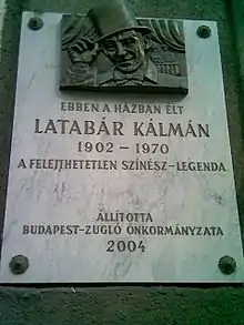 Kálmán Latabár (1902–1970) was a Hungarian comedian and film actor, perhaps the country's most popular comic in the post-war years. "Latyi" reached his peak popularity during the war years and in the early days of Hungarian television, doing stand-up comedy, operettas and musicals, and comic routines in variety shows. A talented song-and-dance man, he had impeccable comic timing. Later in life he made several successful tours in Western Europe, Israel and America, idolized by the émigré Hungarian community. He was also a regular on the numerous theater stages of Budapest and of the provincial cities of the country.
