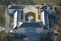 After the death of György Károlyi in 1877, the castle was inherited by his second-born son Viktor. and after his early death, in 1888 the castle was owned by Gyula Károlyi,[2] the organizer and first president of the Hungarian Red Cross Association. His eldest son Mihály Károlyi was a politician, and his younger son József Károlyi, who was the grandson of György Károlyi the current trustee,[2] the chief spokesman and parliamentary representative of Fejér County and Székesfehérvár designed the Eclectic and Baroque facade of the courtyard of the building in 1910, with the center of the U-shaped arch changed the overall effect of the facade. That's when the library room came into the middle. The last owner of the estate was István Károlyi, who during the World War II was the founder-owner of the Madách Theater in Budapest. Following the World War II, the castle and estate were removed from the Károlyi family and nationalized[2] without compensation. From 1946 it was utilized by Budapest Gas Works as a resort.[2] In 1949 was used as a refugee home for Greek children,[2] and then it became a Hungarian state foster home from 1955 to 1979,[2] it then operated as a public education home until the 1980s. In 1995 the castle was managed by the National Monument Administration (MAG). In 1997, the József Károlyi Foundation was established by György Károlyi, living in Paris, and the MAG signed a cooperation agreement for the joint renovation and utilization of the castle. Currently, the Palace Cultural Center is a member of the European Network of Cultural Centers. In order to complement and maintain the cultural functions, the castle aims to integrate into the tourist streams with the help of the hotel and hospitality departments. In 1995 this design was awarded with the Decade of Cultural Heritage of the UNESCO.[2] At the same time as the scientific and cultural activities of the foundation, the Károlyi Castle Development and Operations Ltd. continues managing the castle.