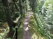 Mossgruveparken is an abandoned mining area with deep, water-filled open-pit mines where iron ore was extracted until the beginning of the 20th century.