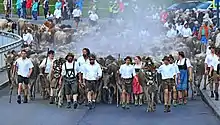 This so-called alpine transhumance ("Dreistufenwirtschaft" in German) shaped much of the landscape in the Alps and is still practiced today. This type of ranching means that the livestock is moved from one stable to another several times a year. In 2011, alpine transhumance in the Bregenz Forest was declared an intangible cultural heritage by UNESCO. It was recognised that the Bregenz Forest is "an impressive landscape on the north side of the Alps" that has "largely maintained its traditional farming structure." Many of the characteristic Bregenz Forest farmsteads of the 18th and 19th centuries have been conserved.[7][8] Thus, farms, farmers huts and alpine pastures are still part of the typical scenery in Vorarlberg.[9] Moreover, the life of the locals was heavily influenced by alpine transhumance and its seasonal migration which resulted in the development of traditional Alpine culture, such as Yodel, Alphorn or Schwingen.[10]
