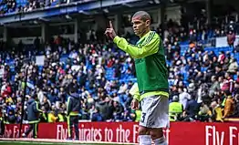 On 12 July 2011, Pepe extended his contract with Real Madrid again, until the end of the 2015–16 season.[25] In a match against Osasuna on 6 November, he scored the team's second goal in an eventual 7–1 home routing.[26] In the first match of the Copa del Rey quarter-final against Barcelona on 18 January 2012, he stamped on the hand of Lionel Messi, who was on the ground after having been fouled.[27][28] The incident drew strong criticism from the Spanish media, who also noted his coming-together with Cesc Fàbregas earlier in the 1–2 home defeat,[29] but he insisted that the incident, which was not seen by the referee, was "unintentional".[30] On 23 January, the Royal Spanish Football Federation cleared him of any wrongdoing.[31][32]