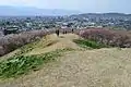The view from the tumulus extends to the Hida Mountains in the distance, and around the base of the hill on which the tumulus was constructed, the remains of 70 hectares of Kofun-period paddy fields to the north and 40 hectares to the east have been found. The kofun and its surroundings now have been planted with over 2000 Yoshino sakura trees, and are a popular flower-viewing spot within Matsumoto city. It is approximately 15 minutes on foot from Matsumoto Station.[2]