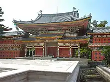 Kōsan-ji (耕三寺) is a Hongan-ji school Jōdo Shinshū temple on the island of Ikuchijima in Onomichi, Hiroshima Prefecture, Japan. Founded by the industrialist Koso Kōsanji in 1936 in honour of his deceased mother, and with an area of approximately fifty thousand square metres, many of its structures are modelled upon the country's most famous historic temples and shrines.[1] The Hill of Hope (未来心の丘, Miraishin no Oka) is a monument landscaped with five thousand square metres of Carrara marble, weighing some three thousand tons, by Kazuto Kuetani.[2] The Kōsan-ji Museum houses over two thousand items, including nineteen Important Cultural Properties.[3]