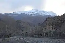 Kūh-Zibad (Persian: کوه زیبد) its peak also called Tir Mahi[1] is a mountain in the province of Razavi Khorasan, city of Gonabad District Zibad in the eastern part of the country, 700 km east of the capital Tehran. The Peak of the Moantain is called Qole -e Tir Mahi is 2,557 metres (8,389 ft) above sea level, or 431 m (1,414 ft) above the surrounding terrain . The width at the base is 5.5 km. The terrain around the Qole-e Tir Mahi and Kuh-e zibad is mainly hilly. The highest point in the vicinity is 2775 meters above sea level, 17.7 km southeast of Qole-e Tir mahi. Around Kuh-e Zibad is very sparsely populated, with 5 inhabitants per square kilometer. Nearest society zibad, 8.5 km north of Kuh-e Zibad. The neighborhood around Kuh-e Zibad is barren with little or vegetation. In the neighborhood around the Kuh-e Zibad are unusually many named mountains and valleys. A cold steppe climate prevailing in the region. The average annual temperature in the area is 17 °C. The warmest month is July when the average temperature is 30 °C, and the coldest is January, with 1 °C. Average annual rainfall is 211 mm (8 in). The rainiest month is February, with an average of 58 mm (2 in) of precipitation, and the driest is July, with 1 mm of precipitation. This mountain had been referred in some historical book such as shahnameh in Davazdah Rokhwar as the Zibad mountain and its eastern part is called black mountain or kuh Gonabad. The long mountain range is called Qohestan and it extends from Bajestan to Birjand near the border with Afghanistan. This mountain range separates south khorasan from Razavi Khorasan, part of this mountain range near Kakhk is called black mountain or kuh e gonabad.