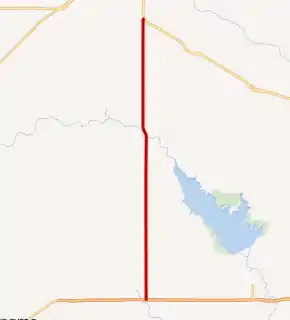 K-17 began at a diamond interchange with US-54 and US-400 near Waterloo in Kingman County and ran north on a two-lane road. The route passed a cemetery just north of its southern terminus and continued north through level farmland, entering Reno County and passing a few miles east of the community of Pretty Prairie, which was accessible by a county road. North of here, K-17 crossed the north fork of the Ninnescah River and curved slightly to the northwest. The route bent back to the north and continued in that direction for approximately eight miles (13 km) before twisting to the east and reaching its northern terminus at an intersection with K-96.[4]