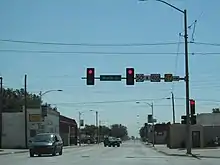 The Kansas Department of Transportation (KDOT) tracks the traffic levels on its highways, and in 2018, they determined that on average the traffic varied from 410 vehicles per day just north of the southern overlap with K-51 to 4,410 vehicles per day in the city of Goodland.[5][6] The only section of K-27 included in the National Highway System is its overlap with US-50 and US-400.[7] The National Highway System is a system of highways important to the nation's defense, economy, and mobility.[8] K-27 also connects to the National Highway System at its junction with I-70 and US-24.[7]
