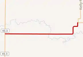 K-65 is maintained by the Kansas Department of Transportation (KDOT), and is a two-lane road its entire length.[6] KDOT tracks the traffic levels on its highways, and in 2019, they determined that on average the traffic varied from 130 vehicles per day near the western terminus to 160 vehicles per day near the eastern terminus.[9] K-52 is not included in the National Highway System.[10] The National Highway System is a system of highways important to the nation's defense, economy, and mobility.[11] The majority of the route is paved with partial design bituminous pavement except the portion within Mapleton which is full design bituminous pavement.[1][12]