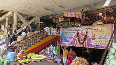 K R Market (Krishnarajendra Market), also known as City Market, is the largest wholesale market dealing with commodities in Bangalore, India. It is named after Krishnarajendra Wodeyar, a former ruler of the princely state of Mysore. The market is located in the Kalasipalya area, adjacent to the Tipu Sultan's Summer Palace, on Mysore Road at its junction with Krishnarajendra Road. It is the first locality in the whole of Asia to get electricity and considered to be one of the biggest flower markets in Asia.[1]