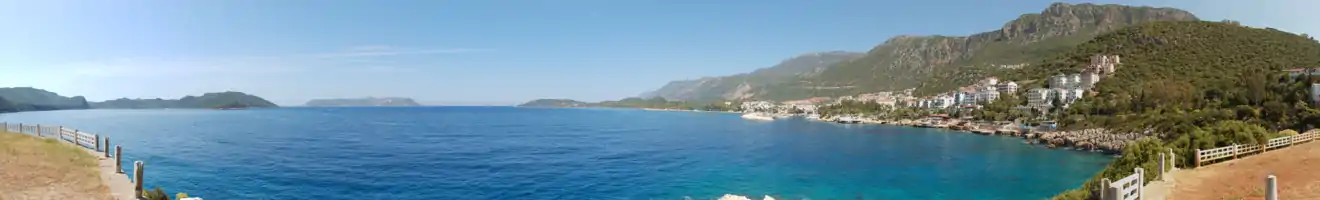 About 6 km (4 mi) offshore from Kaş is the Greek islet of Kastelórizo (in Turkish Meis Adası) [3][4][5] served by a Turkish ferry daily with the option of same day returns.