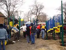 In June 2009, KaBOOM! volunteers worked with United States First Lady Michelle Obama and California First Lady Maria Shriver to build a playground in San Francisco. The playground construction was commissioned under the Obama Administration's summer "United We Serve" initiative.[15]