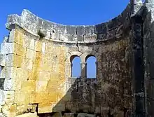 Among the ruins, there are a basilica-plan church, houses, olive production workshops and a tower. There are reliefs of grapes and a relief of Hercules. In the necropolis, there are Ottoman tombs in addition to khamasorion-type sarcophagi. Originally, there was also a Roman road to the south, which is now almost lost in the dense scrub.[1]