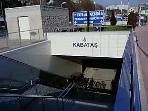 Kabataş is an underground station and eastern terminus of the F1 funicular line of the Istanbul Metro.[2] The station is located under Meclis-i Mebusan Avenue in northeastern Beyoğlu. Connections to the T1 tram line, ferry service and city bus service are available on the surface.