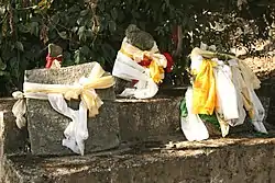 Kabi Lungchok (also, spelled Kabi Longtsok) is a historic site of significance, which is located 17 kilometres (11 mi) north of Gangtok on the Northern Highway in northeastern Indian state of Sikkim. The historicity of the site is attributed to the fact that the Lepchas, the ethnic tribals of Sikkim and Bhutias (ethnic Bhot), the immigrants from southern Bhot who settled down in Sikkim from the 14th century onwards, ceremonially signed a "Treaty of Blood Brotherhood" with religious fervour. Stone pillars mark the location where the treaty was signed. The Treaty was signed at Kabi Lungchok by the Bhot King, Khye Bumsa representing the Bhutias and the Lepcha Chief Thekong Tek. The literal meaning of 'Kabi Lungchok', pronounced ‘Kayu sha bhi Lungchok’, is "stone erected by our blood."[1][2][3] Life-size statues of the Lepcha and Bhutia 'blood-brothers' who signed the treaty has been erected here.[4]