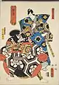 The Kabuki Jūhachiban (歌舞伎十八番), or Eighteen Best Kabuki Plays, is a set of kabuki plays, strongly associated with the Ichikawa Danjūrō line of actors ever since their premieres. These works were chosen and assembled as "the eighteen" by actor Ichikawa Danjūrō VII (1800-1832). The pieces were considered to be seminal representations of the aragoto style in the repertoire.[1] The Danjūrō line has continued to dominate the leading roles, and the printing and production of these plays ever since.