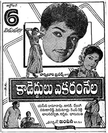 Kadeddulu Ekaram Nela (transl. Two Bulls and One Acre Land) is a 1960 Indian Telugu-language drama film, produced by Ponnaluru Vasanthakumar Reddy under the Ponnaluru Brothers Pvt. Ltd. banner[2] and directed by Jampana. It stars N. T. Rama Rao and Sowcar Janaki, with music composed by C. M. Raju.