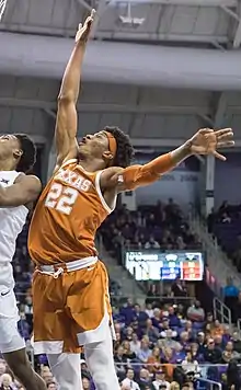 Coach Shaka Smart said that Jones had the best work ethic of any big man he coached. Despite this, Jones struggled to get playing time early in his freshman season. He gradually saw more playing time as the season progressed, finishing with eight points on 4–5 shooting from the field in just 10 minutes of the Longhorns’ 73–71 win over McNeese State on November 30.[12] As a freshman, Jones averaged 3.6 points and 3.2 rebounds per game.[13] On January 26, 2021, he registered his first double-double, with 15 points and 10 rebounds in an 80–79 loss to Oklahoma.[14] Jones was named Big 12 Sixth Man of the Year and to the All-Big 12 honorable mention.[15] As a sophomore, he averaged 8.8 points and 4.8 rebounds per game. On March 24, 2021, Jones declared for the 2021 NBA draft.[16]