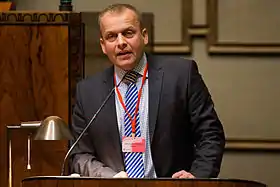 Kaj Leo Holm Johannesen (born 28 August 1964 in Tórshavn) is a Faroese politician. He was the prime minister of the Faroe Islands, representing the Faroese Unionist Party (Sambandsflokkurin). He took office, succeeding Jóannes Eidesgaard on 26 September 2008[2] and left office on 15 September 2015,[3] after his party and coalition with Fólkaflokkurin and Miðflokkurin lost the general election on 1 September 2015.[4] Johannesen is also a former international football player; he was goalkeeper for the Faroe Islands national football team.[5]