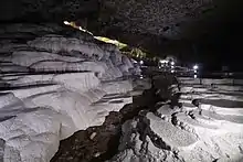 The cave is in Kaklık town of Denizli Province at 37°52′24″N 29°23′7″E[1] Its distance to Denizli is about 30 kilometres (19 mi).[2] Visitors to the cave follow the highway to east and in Kaklık town they turn to north. The cave was opened to visits in 2002. There are a small amphitheatre, a swimming pool and a cafeteria in and around the cave.