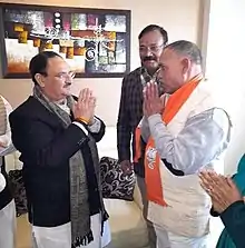 ![]() Kali Charan Suman with JP Nadda on his right side | |