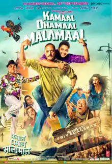 Kamaal Dhamaal Malamaal is a 2012 Bollywood comedy-drama film directed by Priyadarshan. It stars Nana Patekar, Paresh Rawal, Om Puri, Asrani, Shreyas Talpade, Shakti Kapoor and Nyra Banerjee. The film has been produced by Percept Picture Company. The story is adapted from Malayalam film Marykkundoru Kunjaadu [1] written by Benny P. Nayarambalam. It was released on 28 September 2012. This film is the reboot of the 2006 comedy film Malamaal Weekly.