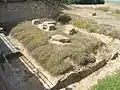 Modern remains are scanty. They include archaic tombs (seventh century BC) and ruins of a temple of Athena. Nearby are tombs of a necropolis from the fifth-fourth century BC. Part of the remains are now in the archaeological museum of Syracuse. The archaeological park includes the remains of a "Hamman qbel Jamaa" - public baths used before entering the mosque, one of only two known on the island.[3]