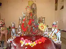 Vishalakshi Temple - Situated at Anur, around 2 km from Kamarpukur, goddess Vishalakshi is a popular deity. People vow offerings to the goddess with the hope that the goddess will fulfil their desire. Not very long ago the goddess resided under the open sky at the place where the present temple is situated. Villagers were used to construct an ordinary leafy shed every year before the Makar Sankranti (Mid-January) when a fair was organised. The tradition of the fair is being followed till today. One anecdote, associated with goddess Vishalakshi, states that Gadadhar (Sri Ramakrishna in his childhood) was accompanying a group of pious ladies in their way to offer worship to goddess Vishalakshi. When he was singing the glory of goddess Vishalakshi, suddenly his body became stiff and tears flowed down his cheeks. Seeing these ladies realised that it might be due to the mystic influence of the goddess on the simple-hearted child. They immediately started praying to goddess Vishalakshi to save Gadadhar. Wonder! Gadadhar woke up with a brightened face.