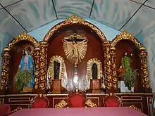 ![]() Altar showing the Twin Crosses on either side of the crucifix. | |