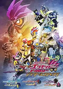 Kamen Rider Ex-Aid Trilogy: Another Ending (仮面ライダーエグゼイド トリロジー アナザー・エンディング, Kamen Raidā Eguzeido Torirojī Anazā Endingu) is a V-Cinema tokusatsu series of films part of the Kamen Rider Ex-Aid franchise. It was released for a limited time in Japanese theaters on February 3, 2018, with each subsequent chapter of the trilogy released in two-week intervals. Each of the films' subtitles contains the name of the focused characters.[1][2]