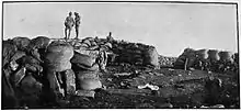 During the Siege of Kimberley, Kamfers Dam was the scene of a skirmish on December 9, 1899. Subsequently a large Boer cannon was stationed at Kamfers Dam which started firing 96 lb. shells at the town on February 7, 1900. A number of cavalry sorties were made from Kimberley in attempts to capture it. The heavy gun and its crew however evaded capture after the relief of the siege, when its retreat was covered by Boer defensive positions at Dronfield.[10]