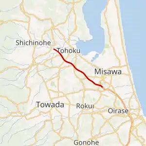| 4.1 | 2.5 | — | Rokunohe-Misawa | Aomori Prefecture Route 22 – Rokunohe, Misawa, Shichinohe, Tōhoku | |||