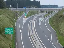 The Kamikita Expressway (上北自動車道 Kamikita Jidōshyadō) is a free two-lane expressway in Aomori Prefecture connecting the towns of Shichinohe and Rokunohe. Alongside other tolled roads, the expressway is part of a series of highways that will link the Hachinohe Expressway to the Aomori Expressway. The road is managed by the Ministry of Land, Infrastructure and Transport and is numbered E4A as an extension of the Tōhoku Expressway. It is routed concurrently with an alternate route of Japan National Route 45.[2]