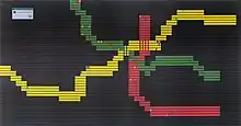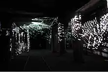 1997 and M-System, participatory web game project, 1998)[1] Kamila B. Richter is rendering the data streams visible which surround us on a daily basis (Emporium Spirit,[2] New York Stock Exchange visualization, 2005, Black Vortex, Prague Stock Exchange visualization, 2006, and others) and gives rise to the strings of zeros and ones, which invisibly plough through our daily communication, work and social life in exhibition spaces, where those data streams made visible meander, dislimn and resurge.[3]