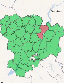 Kamyshinsky District (Russian: Камы́шинский райо́н) is an administrative[1] district (raion), one of the thirty-three in Volgograd Oblast, Russia. As a municipal division, it is incorporated as Kamyshinsky Municipal District.[6] It is located in the northeast of the oblast. The area of the district is 3,563 square kilometers (1,376 sq mi).[3] Its administrative center is the city of Kamyshin[2] (which is not administratively a part of the district).[1] Population: 42,893 (2010 Census);[4] 45,019 (2002 Census);[8] 37,276 (1989 Census).[9]