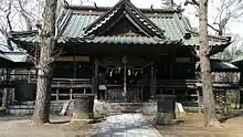 It was founded on March 15, 931, during the reign of Emperor Suzaku, by a feudal lord named Toyoda-ko.[2] It enshrines the thunder deity Kanamura-wake-ikazuchi-no-kami.