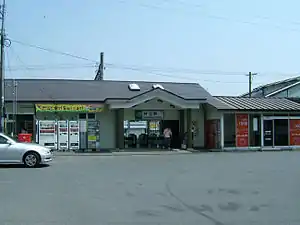 The station consists of one side platform and one island platform, connected to the station building by a footbridge. The station is staffed. Two local trains stop approximately every hour during the day.