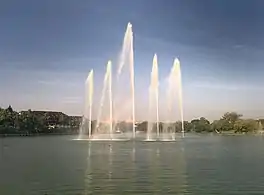Kandawgyi Lake (Burmese: ကန်တော်ကြီး pronounced [kàɰ̃dɔ̀dʑí]; literally "great royal lake", formerly Royal Lake), is one of two major lakes in Yangon, Burma (Myanmar). Located east of the Shwedagon Pagoda, the lake is artificial; water from Inya Lake is channelled through a series of pipes to Kandawgyi Lake. It was created to provide a clean water supply to the city during the British colonial administration.[1][2] It is approximately 5 miles (8 km) in circumference, and has a depth of 20 to 45 inches (50 to 115 cm).[3]
