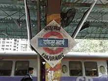 Kanjurmarg (Marathi pronunciation: [kaɲd͡zuɾmaːɾɡ]) is a railway station on the Central line of the Mumbai Suburban Railway network. Kanjurmarg railway station is the main access point for IIT Bombay, KV POWAI, NITIE, Hiranandani Gardens, and other locations in Powai. The station was opened on 26 January 1968 and It is named after the local Kanjur village.[1] It is the closest railway station to Powai which is not served by trains.