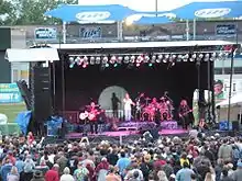 Kansas is an American rock band that became popular in the 1970s initially on album-oriented rock charts and later with hit singles such as "Carry On Wayward Son" and "Dust in the Wind".[4] The band has produced nine gold albums, three multi-platinum albums (Leftoverture 4×, Point of Know Return 4×, and The Best of Kansas 4×), one other platinum studio album (Monolith), one platinum live double album (Two for the Show), and a million-selling single, "Dust in the Wind". Kansas appeared on the Billboard charts for over 200 weeks throughout the 1970s and 1980s and played to sold-out arenas and stadiums throughout North America, Europe and Japan. "Carry On Wayward Son" was the second-most-played track on US classic rock radio in 1995 and No. 1 in 1997.[5]