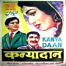 Kanyadaan (transl. Giving Away the Bride) is a 1968 Hindi social romantic drama film directed by Mohan Sehgal.[2] The film was produced by Rajendra Bhatia for Kiron Productions. The story and screenplay was written by R.A Baqueri with dialogue by Sarshar Sailani and director of photography was K. H. Kapadia.[3] The music direction was by Shankar Jaikishan and lyrics by Hasrat Jaipuri and Gopaldas Neeraj.[4] The film stars Shashi Kapoor, Asha Parekh, Om Prakash, Achala Sachdev, Dilip Raj, Sayeeda Khan and Padma Rani.[5]