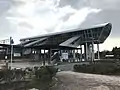 A view of the main (south) entrance of the station. Note the ramp which leads to an elevator and the direct entrance to platform 1.