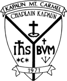 Kapaun Mt. Carmel High School was established in 1971 as the result of the merger of "Chaplain Kapaun Memorial High School" and "Mount Carmel Academy" at the current Vickridge location.