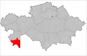 Karakiya District (Kazakh: Қарақия ауданы, romanized: Qaraqiia audany, قاراقئيا اۋدانى) is a district of Mangystau Region in south-western Kazakhstan. The administrative center of the district is the selo of Kuryk.[2] Population: 32,304 (2013 estimate);[1] 29,579 (2009 Census results);[3] 23,437 (1999 Census results).[3]