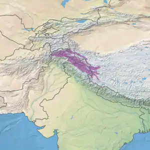 The Karakoram-West Tibetan Plateau alpine steppe is an area of high-elevation grasslands covering 143,300 square kilometres (55,300 sq mi). It is centered on the Karakoram Range, west of the Himalaya Range. It also includes nearby ranges, such as the Ladakh Range.