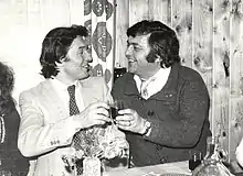 The 1980s were marked by international success for Gott, including the filming of the musical In the Track of Bel Canto in Italy in 1981, with an accompanying German-Italian album,[7] and a duet performance with Sofia Rotaru in the Soviet Union.[12] In 1983, Gott was awarded the Gold Medal of Hermann Löns in Munich, Germany, for his role in the development of German traditional song.[7] On 30 April 1985, he was awarded the title of National Artist for exceptional artistic contributions.[5][7] In 1986, to mark 20 years with the company, he received Polydor's Golden Needle, previously only awarded to Leonard Bernstein and Herbert von Karajan.[7] In March 1991 he was the first artist inducted into the Hall of Fame of the Academy of Popular Music,[5][7] and he was awarded the Supraphon Diamond Record Award on 8 September 1992, in recognition of record sales of 13 million in Czechoslovakia.[5][7][6]