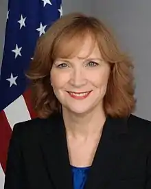 After Stanton joined the Foreign Service, she held early positions that included working at the State Department's Operations Center as a Watch Officer, and she was a Special Assistant to Secretary of State George P. Shultz.[3] She served as a consular officer at the U.S. Embassy in Beijing, China,[4] from 1987 to 1990, experiencing the Tiananmen Square protests of 1989.[5] From 1991 to 1993 she served at the embassy in Islamabad, Pakistan. She then returned to the U.S. for a two-year assignment as a consular officer in the Bureau of Consular Affairs at the State Department in Washington, D.C. Stanton then returned to the embassy in Beijing, where she served from 1995 to 1998.