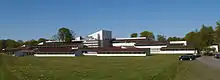 From the mid-1950s, as a result of success in a number of competitions, they received several important commissions, their designs often inspired by Tetsurō Yoshida's Das japanische Wohnhaus or by the American architects Ludwig Mies van der Rohe and Frank Lloyd Wright. Japanese influence can be seen in their use of timber overhangs and an atrium yard at Skive Seminarium (1959) while Blågård Seminarium and Enghavegård School both have a more international Cubist appearance with glazed facades and flat roofs. Subsequent educational institutions such as Højstrupgård and the LO-skole in Helsingør also had an atrium yard as their central feature as well as structures of various sizes to suit the needs of the courses to be taught. Care was also taken to provide a high level of interior decoration with the assistance of appropriate experts. The swimming facilities at Kildeskovhallen (1972) in Gentofte present an elegant blend of modern and traditional design with huge glazed facades looking out towards the forest.[1]