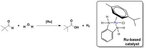 Lithium aluminum hydride has widely been used as strong reducing reagent. However, it is difficult to reduce resonance stabilized carbonyl groups present in esters and lactones to alcohols. It was then that her research group came up with idea of hydrogenation of esters and lactones to form alcohol using base-free metal-catalyzed complexes. The catalyst that gave rise to a high yield of formate esters is a half-sandwich iridium bipyridine complex. The same half-sandwich complexes of iridium and rhodium were used as competent catalysts to hydrogenate carboxylic acids under relatively mild conditions. The mechanism behind this reaction involves hydride transfer from catalyst to formic acid as the main part of the reaction.[8]